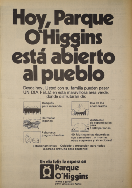 Desde entonces, el Parque O’Higgins pasó a convertirse en uno de los pulmones verdes de Santiago y en un espacio fundamental de encuentro para sus habitantes. No solo acoge las celebraciones de Fiestas Patrias y numerosos espectáculos políticos, como lo fue durante la década de los ochenta, así como eventos culturales y deportivos a lo largo del año, sino que también ofrece a las familias y visitantes la posibilidad de disfrutar de su arbolado, recorrer sus senderos o refrescarse en sus piscinas durante el verano.